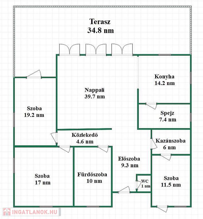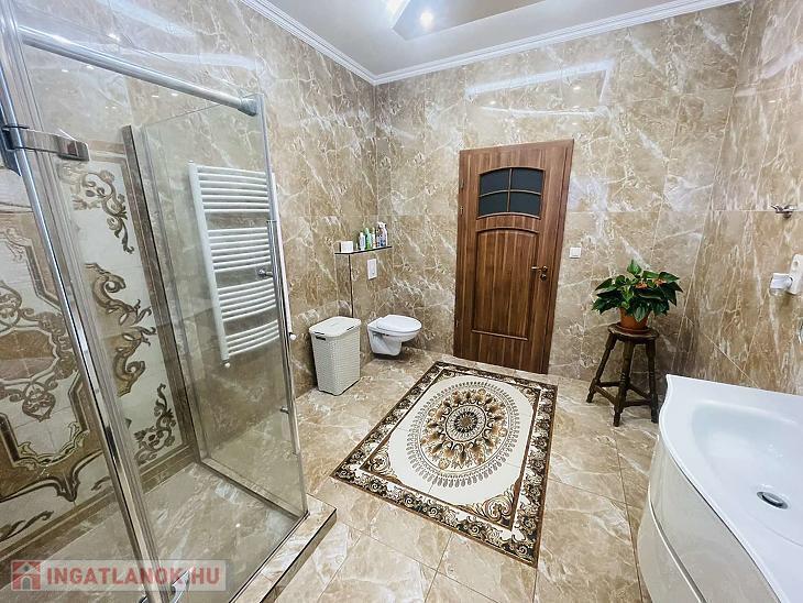 A ház kifogástalan állapotban van, minőségi burkolatok, tágas terek jellemzik.