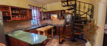 Gyönyörű impozáns kandalló a nappali ékköveként, kovácsoltvas belső lépcső amik az ingatlan fényét tovább emelik!