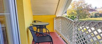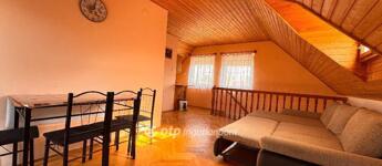 A felső szinten található egy szintén 1,5 szobás lakás - nappali, szoba, fürdőszoba, konyha elosztással, saját erkéllyel, udvarral.