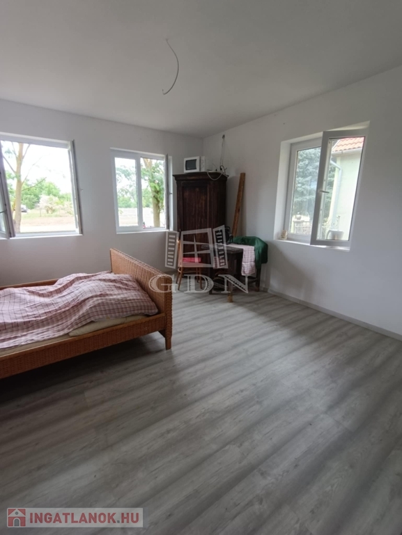 A 2356 m2 alapterületű telken lévő 100 m2 nagyságú épületben 2 szoba, előszoba, konyha és fürdőszoba wc-vel helyiségek találhatók. A ház belsejét a tulajdonos felújította, a nyílászárókat műanyagra cserélte.