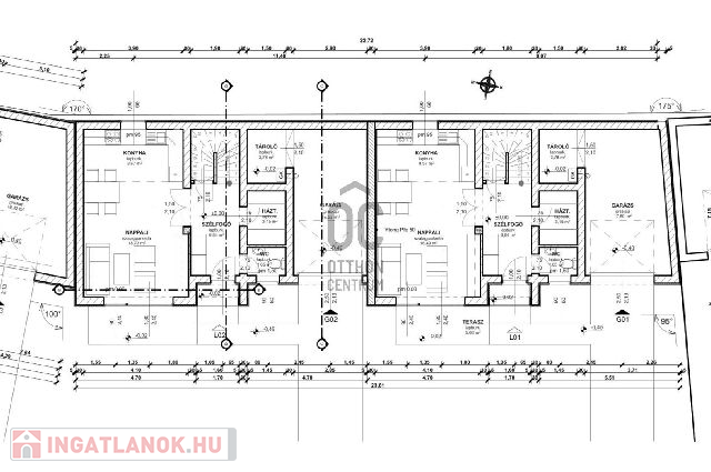 A lakások csak garázzsal kapcsolódnak egymáshoz, és a lakások között hanggátló fal biztosítja a nyugodt lakókörnyezetet. A garázs előtti rész térkövezett.