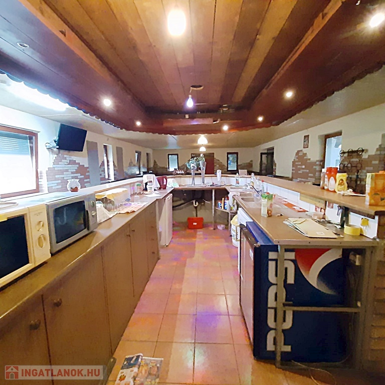 Az ingatlan 2021 előtt vendéglátó egységként működött, hatalmas vendégtérrel, billiárdteremmel, automata tekepályával, két vendégszobával és a szükséges kiszolgáló helyiségekkel, raktárakkal. Alaprajz a fotók között.