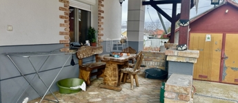 A házba, egy 25 m²-es hangulatos, szeletelt téglával díszített teraszon át jutunk be, ami tökéletes helyszín a pihenéshez és a baráti összejövetelekhez. Az ingatlan riasztó- és kamerarendszerrel ellátott.