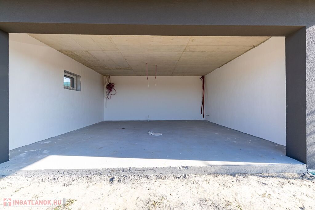 A teljes nappali alatti részben dupla garázzsal, elektromos autótöltő előkészítéssel, elektromos garázskapuval.