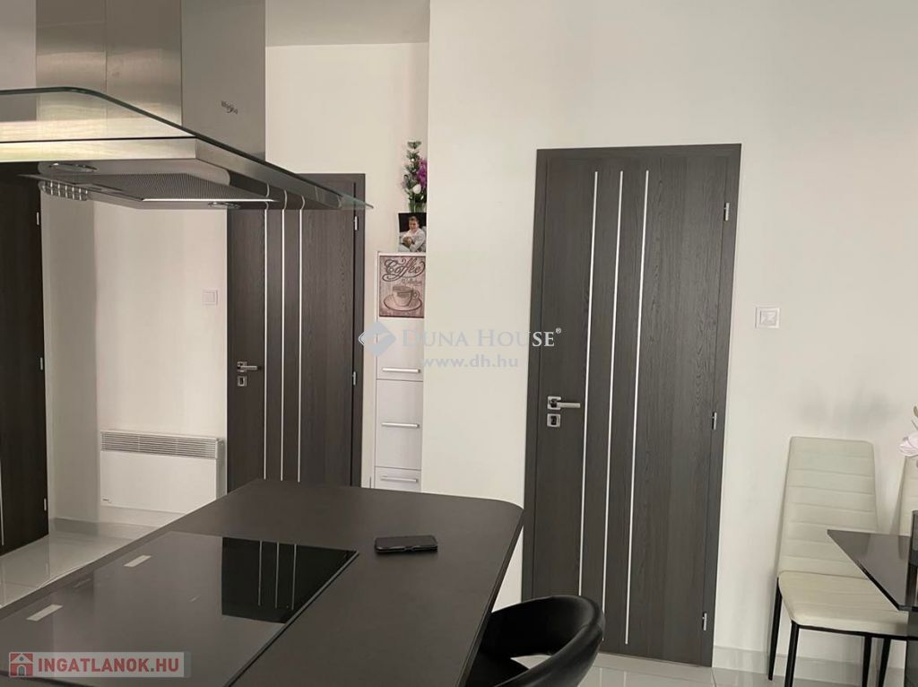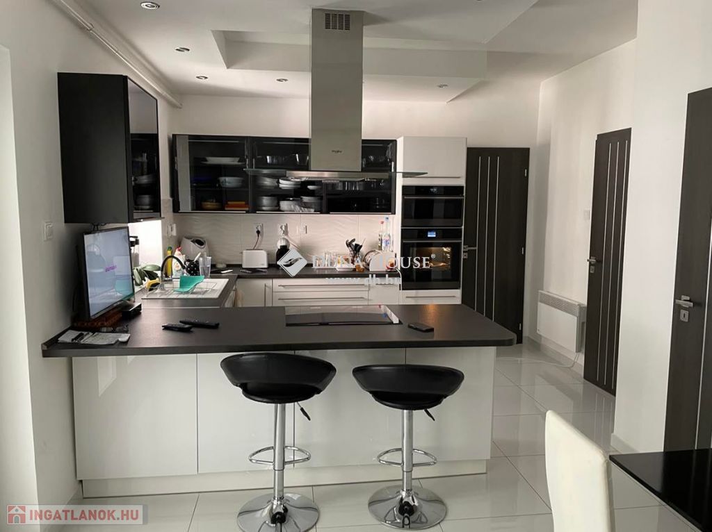 Az exkluzív konyhába érintésre motorikusan nyíló/záródó konyhabútor, fékezett záródású fiókok, prémium kategóriás háztartási gépek kerültek beépítésre. A nappaliban a ház ékessége, a cserépkályha található. A hálószoba a nappaliból és az előszobából is elérhető.