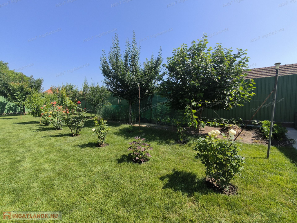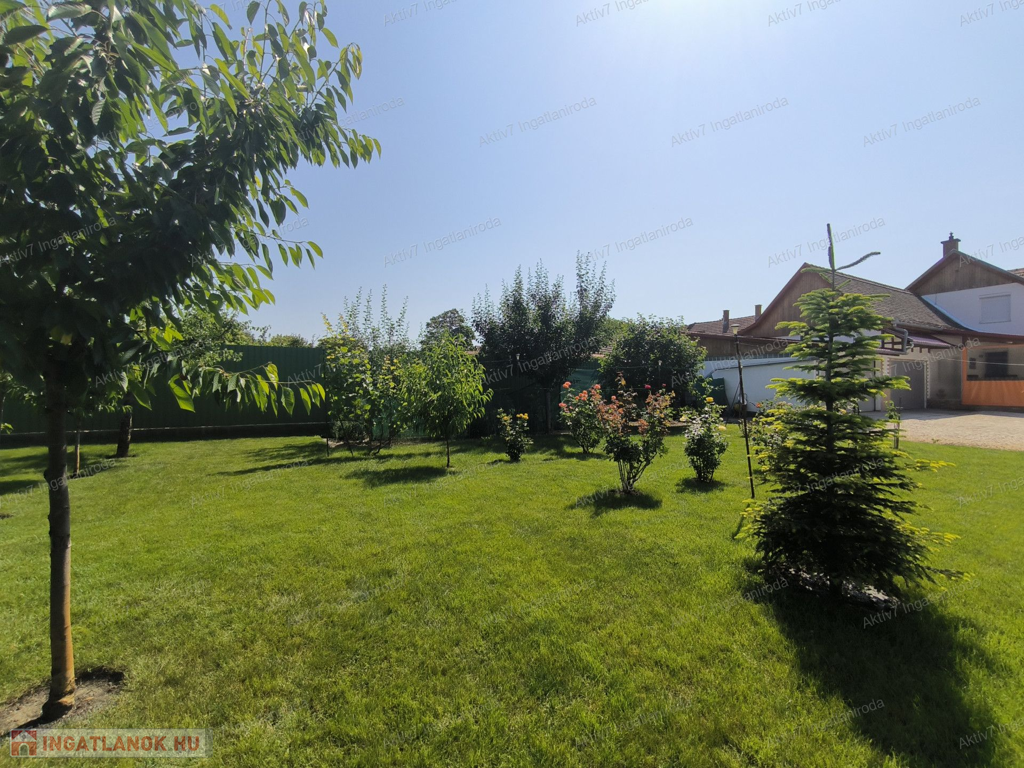 Az udvarba elektromos mozgatású nagykapun keresztül juthatunk be, ahol akár három személyautó elhelyezésére alkalmas garázsok találhatóak. A parkosított kertben termő gyümölcsfák és szőlő került telepítésre, melyek öntözéséhez fúrt kút biztosít vizet.