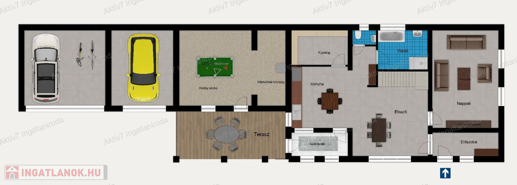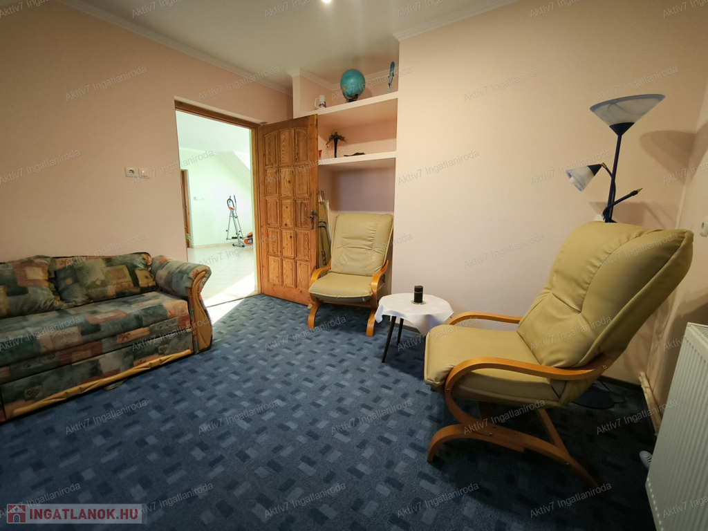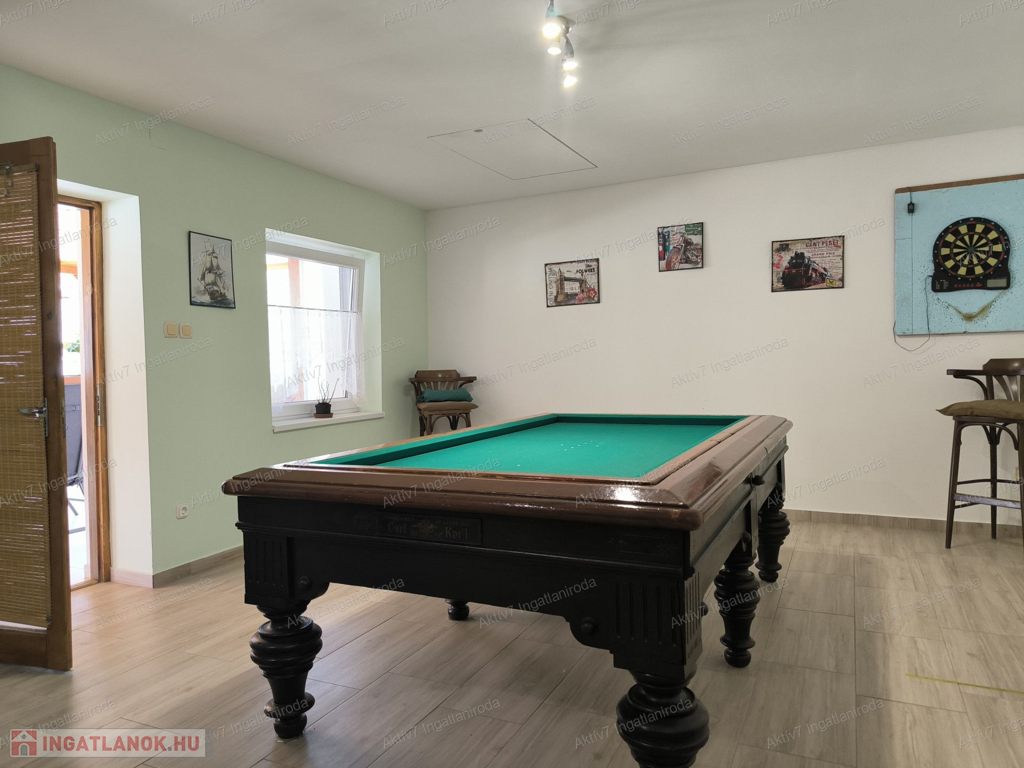 A garázsok (26 + 19 m2) és a főépület között, kialakításra került egy a teraszról megközelíthető 29 m2 alapterületű hobby szoba, amely a terasszal együtt tökéletes helyszíne lehet családi-, vagy baráti összejöveteleknek.
