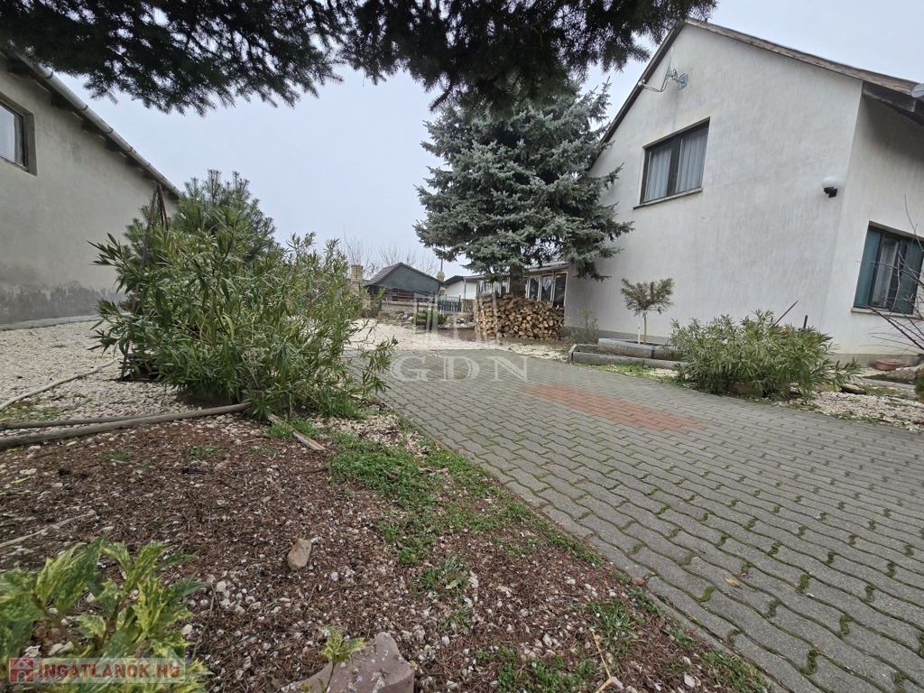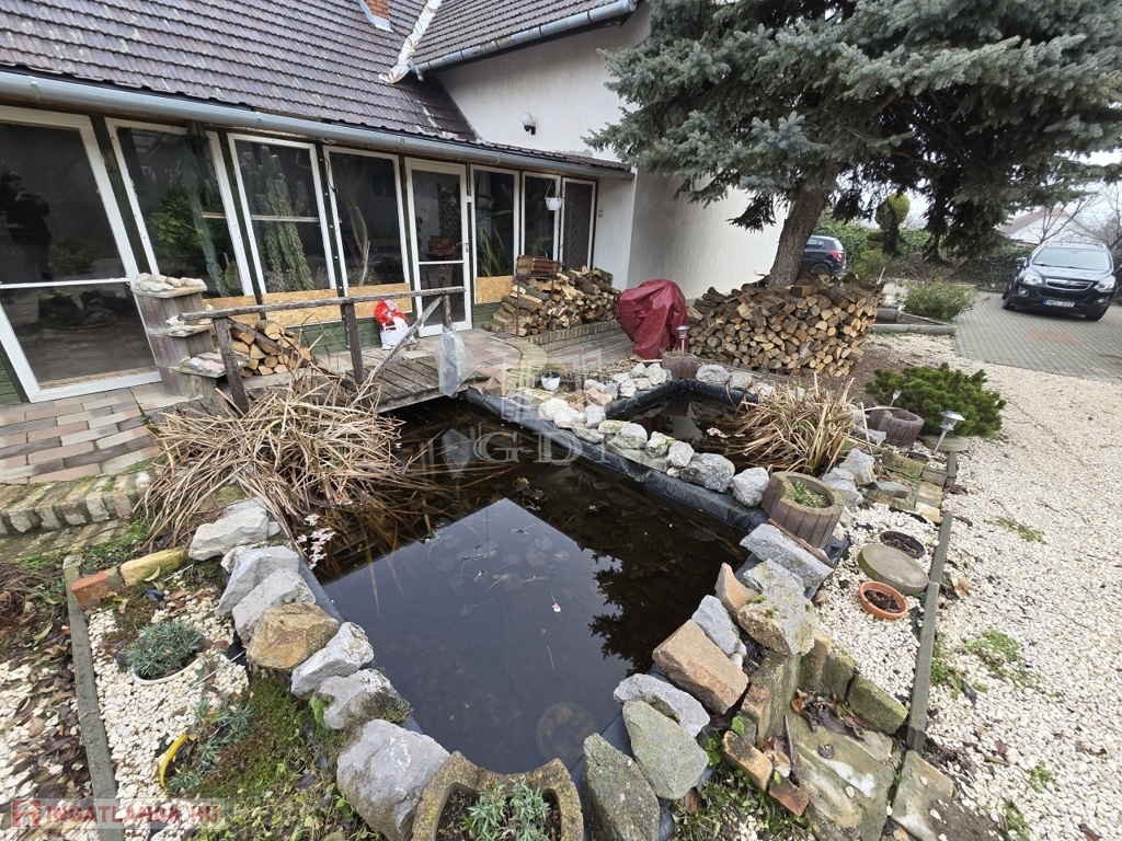 Az 1474 m2-es telek terület első udvari része térkövezett, melyen tovább haladva az udvar parkosított részére érünk, ahol 2 kisebb kerti tó is helyett kapott. A családi összejövetelek igazán jó helyszínéül szolgál egy kinti fedett főzőhelyiség, ahol az elmaradhatatlan kemence is megtalálható. Az ingatlanhoz számos melléképület is kialakításra került, melyekből érdemes kiemelni egy plusz garázst és egy nyári konyhát. Az udvar hátsó részében pedig található több gyümölcsfa.