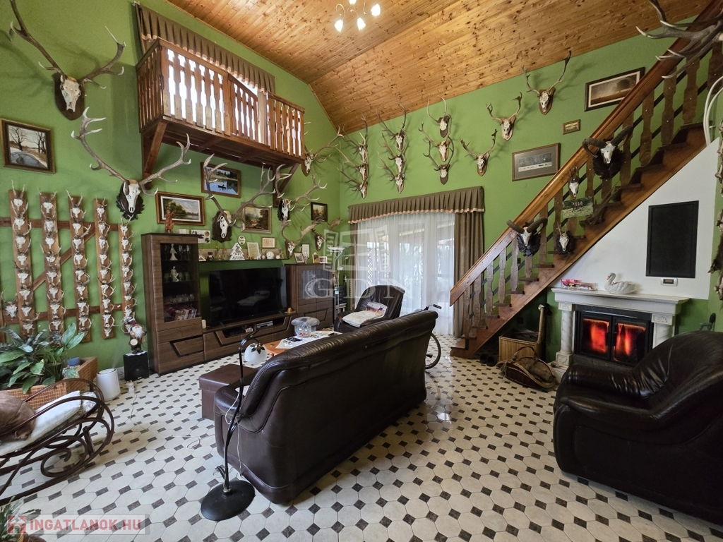 A nappali igazán egyedi stílusú a közel 580 cm-es belmagasságával, az ingatlan további helyiségében átlag 275cm a belmagasság. A ház két bejáraton át is megközelíthető, valamin a nappaliból és két szobából együttesen kilépve érkezünk meg egy fedett teraszra, mely nyáron a délutáni ebédek helyszíne, míg a hidegebb időkben téliesített változatban add helyet a télikertnek. Az otthon melegét gázkondenzációs padlófűtés, fatüzelésű kandalló illetve gázkonvektorok, míg a melegvíz ellátásáról villany és gázbojler gondoskodik. Hőszigetelt fa nyílászárókkal ellátott.
