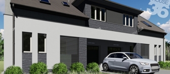 Ikerház esetében nagyon fontos információ, hogy a 2 ház úgy illeszkedik, hogy a lehető legkevesebbet használt területeknél érjen össze, általában a garázsoknál.