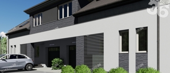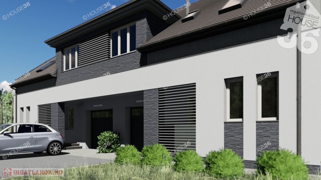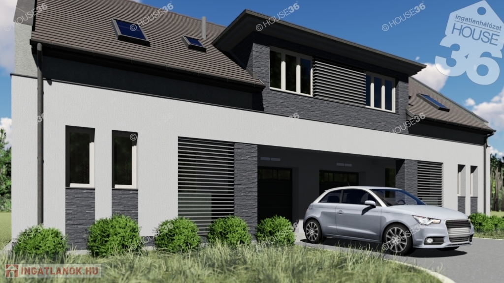 Az összközműves, betonos utcában található, 286 m2-es telekre egy 120 m2-es prémium minőségű 2 szintes ikerházat terveztek.