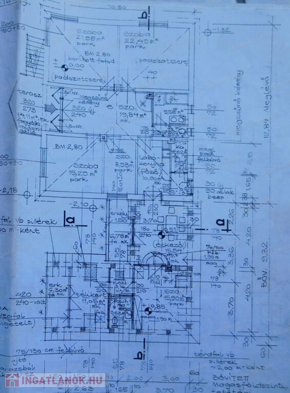 - lakótér: nappali, konyha-étkező, fürdőszoba káddal, külön WC-vel, fürdőszoba zuhanyzóval és WC-vel, 6 hálószoba, 2 garázs, terasz, erkélyek