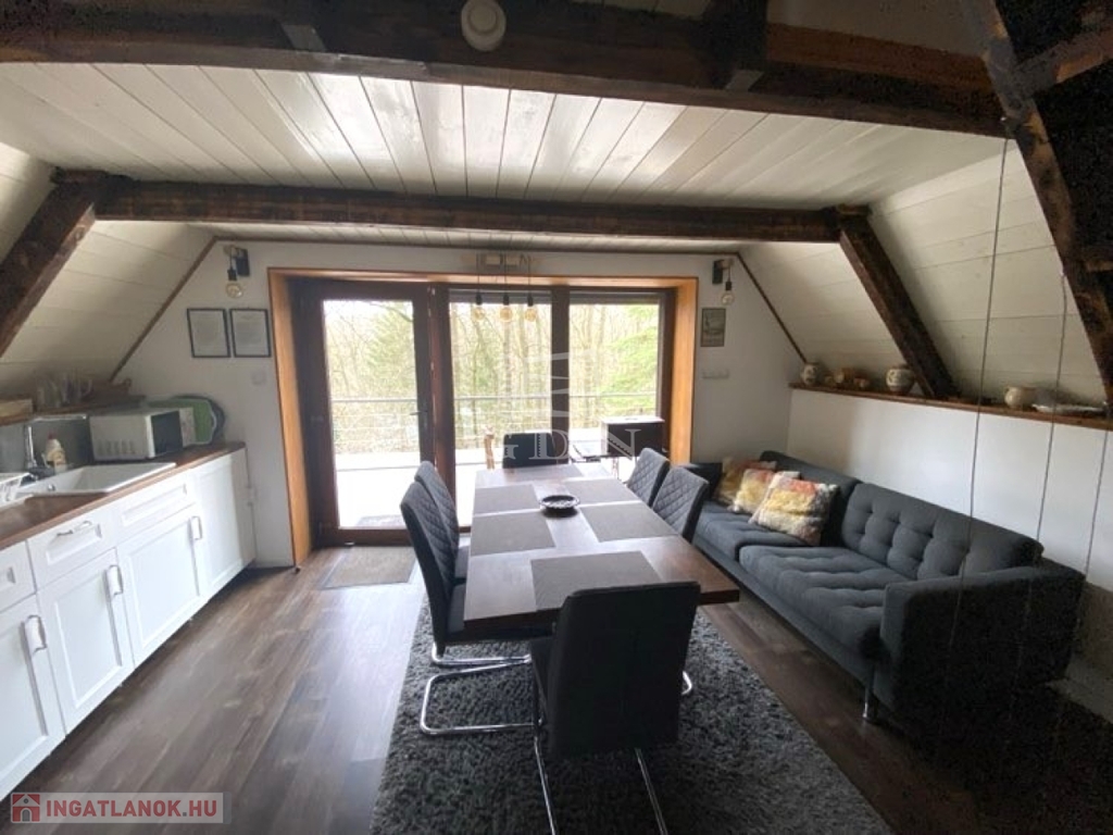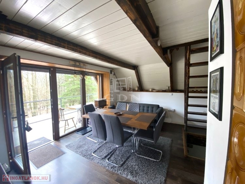 Börzsönyligeten, festői, erdős környezetben, a főúttól mindössze 2 percre, még is az erdő közepén, több éve sikeresen működő, folyamatosan, majdnem telt házzal üzemelő wellness pihenő faház teljes berendezéssel és működő vállalkozással együtt eladó!