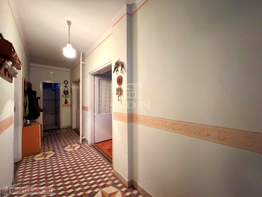 előszoba/közlekedő, konyha, kamra, fürdőszoba, 2 nagyszoba és 1 kisebb szoba került kialakításra.