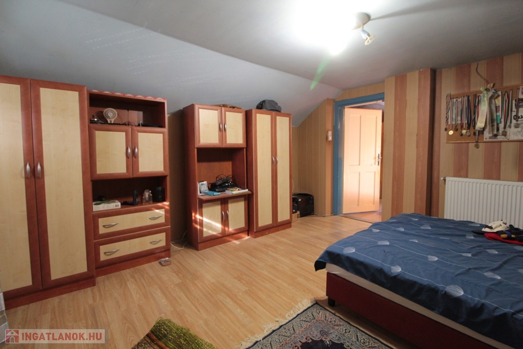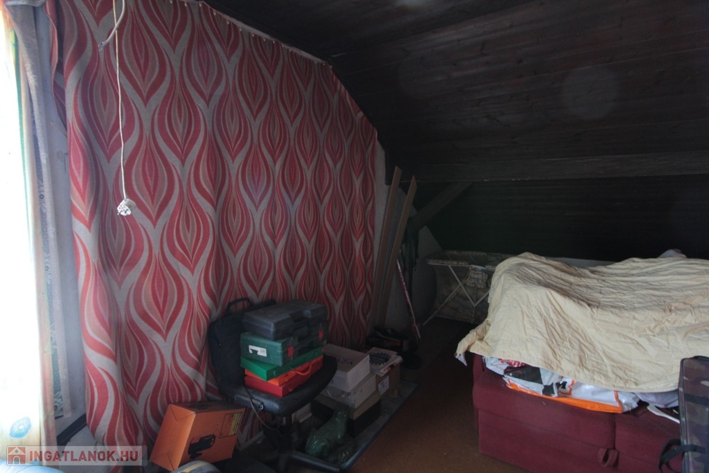 A tetőtérben két félszoba épült, amelyek közül az egyik jelenleg tárolóként funkcionál.