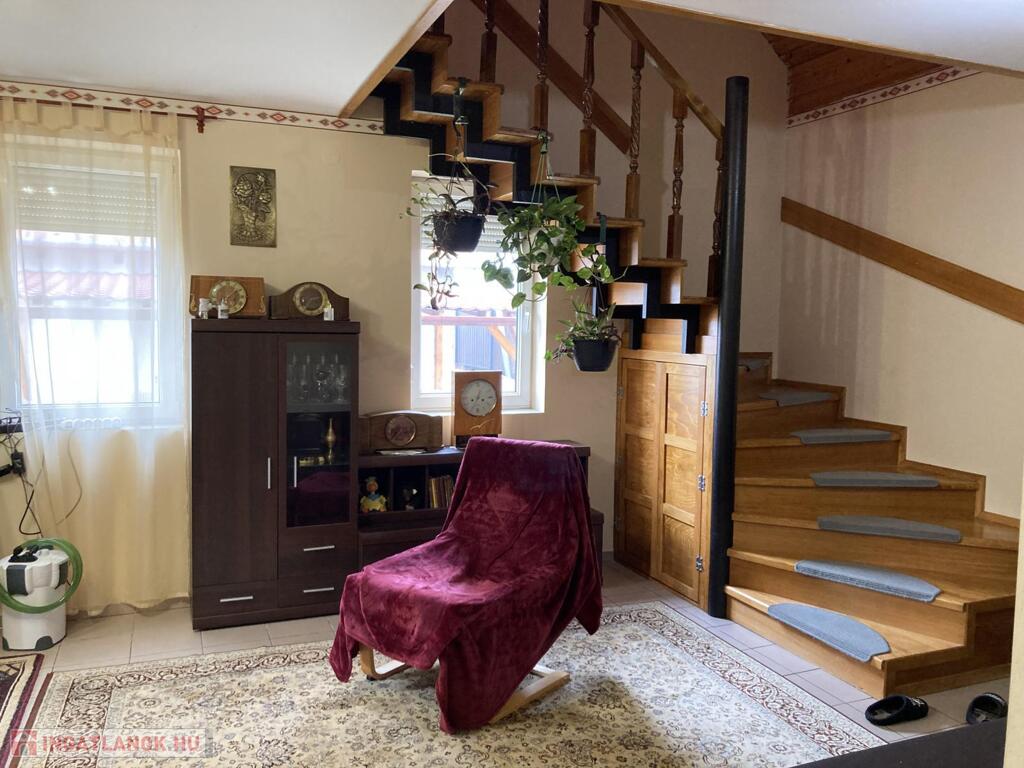 Földszint elosztása: félszoba, tágas nappali, konyha-étkező, nagy gardróbszoba, fürdőszoba és külön WC.