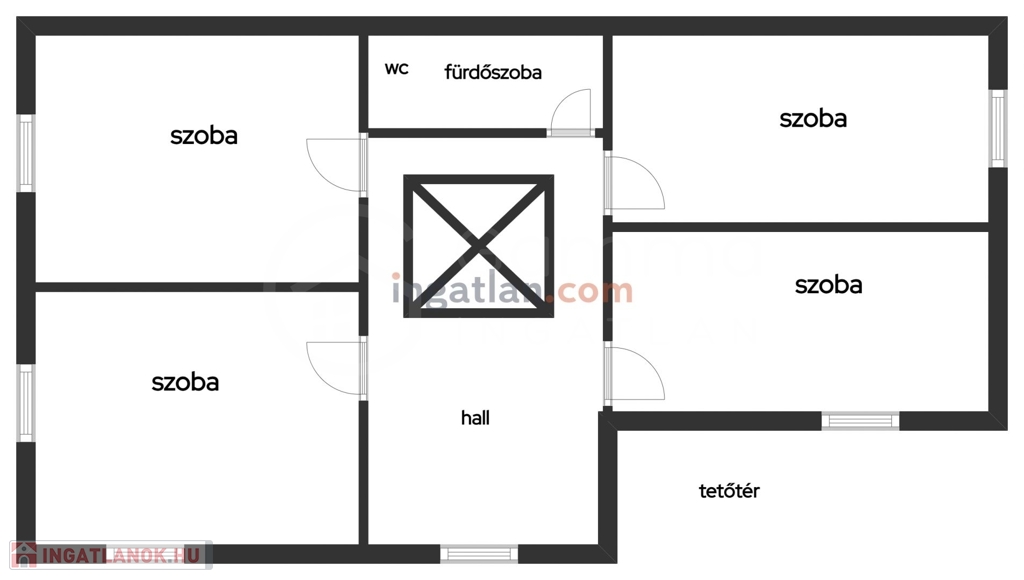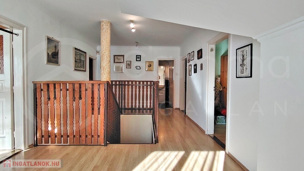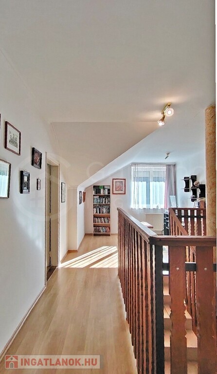 • Emelet (Tetőtér): Egy tágas társalgóból nyíló 4 különálló szoba (laminált padlóval) és egy további fürdőszoba WC-vel biztosít teret a család minden tagjának.