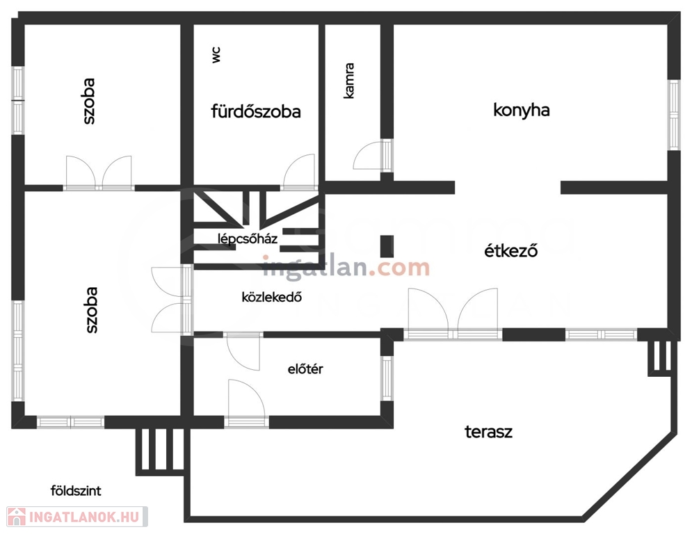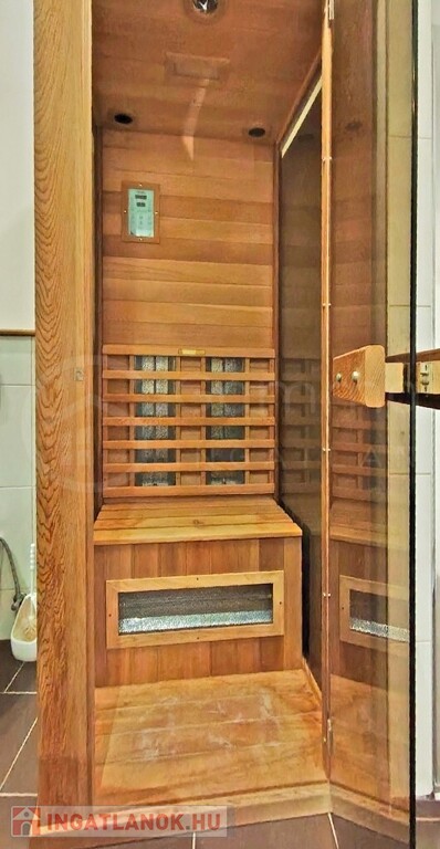 • Földszint: Előtér, 2 szoba (hagyományos faparkettával), konyha+étkező+kamra (járólappal), terasz, valamint egy fürdőszoba WC-vel, melynek ékköve a beépített INFRA SZAUNA – a mindennapi kikapcsolódásért!