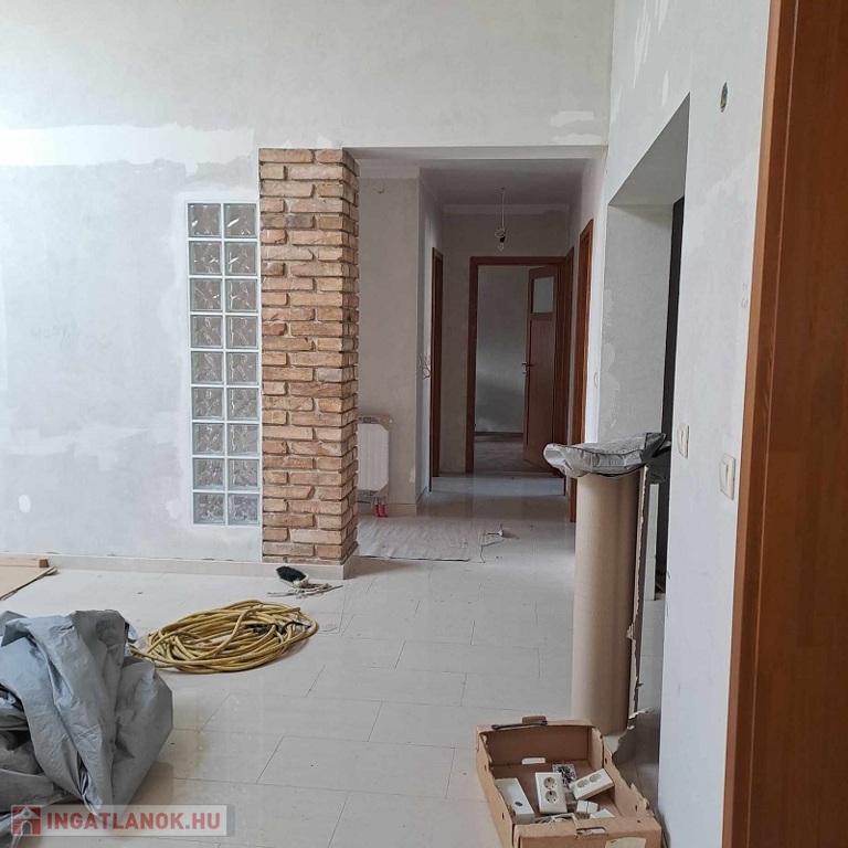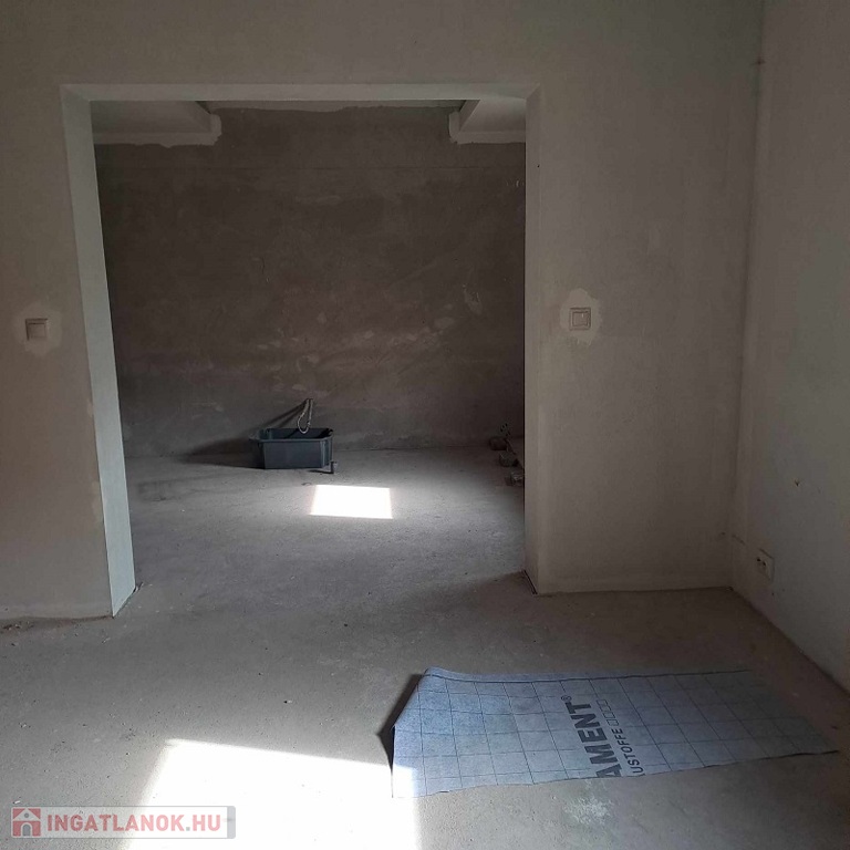Lakóterülete 101 m2, melyben előszoba, konyha-étkező, nappali, 3 szoba, 2 fürdőszoba és háztartási helyiség található. Az egyik fürdőszoba nincs burkolva, szerelvényezve, azt be kell fejezni.