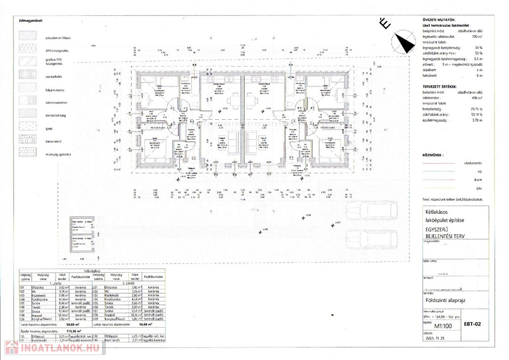 Monor Újtelepen 2 lakásos, 56,68 m2-es, 2 szoba + nappalis társasházi lakások épülnek saját telekrésszel, MÁR CSAK A 2. LAKÁS FOGLALÓZHATÓ!!!