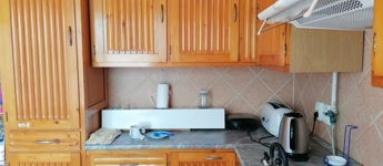 A konyha tágas, világos, az ablaka az udvarra néz, itt egy klíma is van felszerelve.