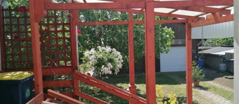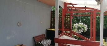 A tető lemez fedésű, a nyílászárók műanyagból vannak.