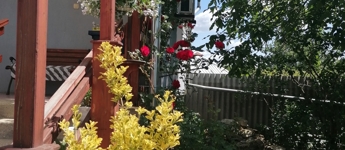 Az udvar szépen parkosított, rendezett, néhány gyümölcsfa és örökzöldek vannak benne.