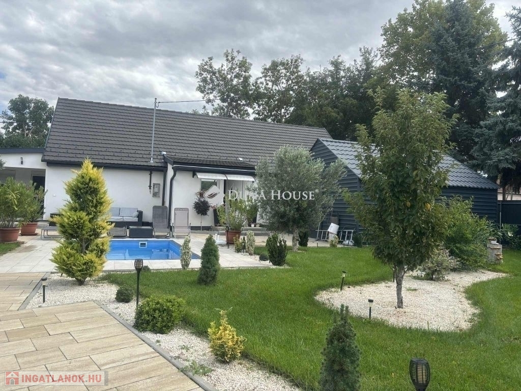 A telken medence gyönyörű parkosított udvar, valamint kétállásos garázs is helyet kapott.