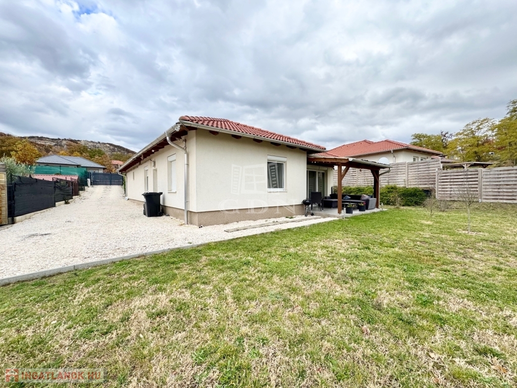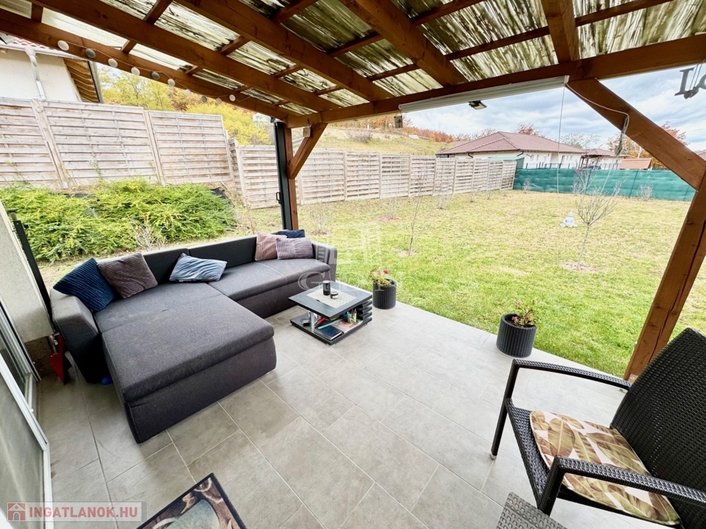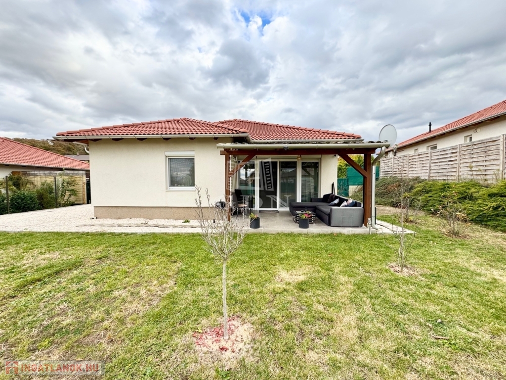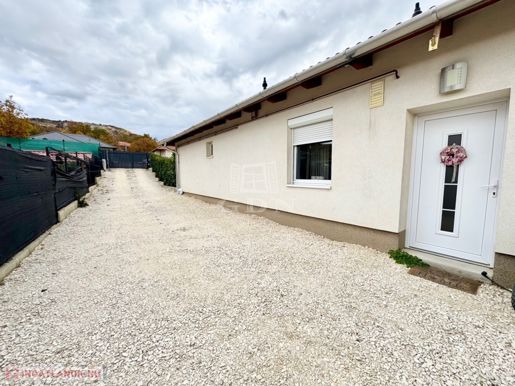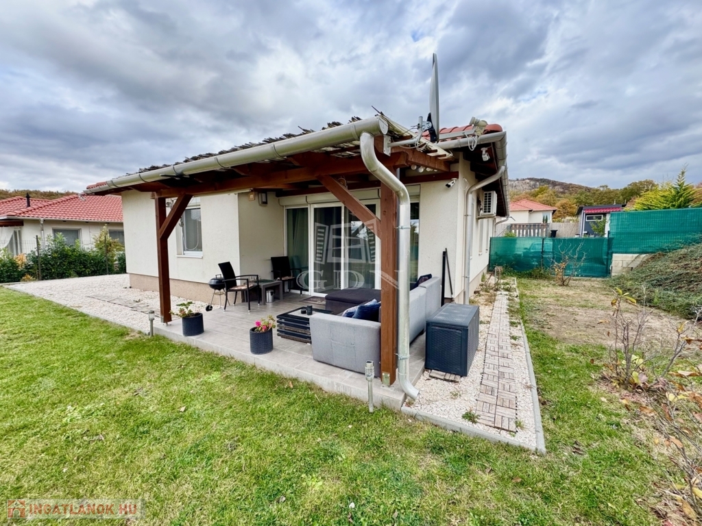Budapest és Esztergom között a pilisi hegyek ölelésében található hangulatos településen, Pilisjászfalun, Somlyó völgyi lakópark LEGJOBB RÉSZÉN, csendes jelenleg még murvával borított, de hamarosan aszfaltozásra kerülő összközműves utcájában, 800 nm-es saját kerttel rendelkező, 2020-ban épült, szigetelt, egyszintes, 71 nm-es lakóterületű, nappali + 3 háló szobás, amerikai konyhás, kamrás, közvetlen kert-teraszkapcsolatos, kiváló elosztású, külön nyíló szobás, napos-világos D-NY-i fekvésű, alacsony fenntartású, modern, kondenzációs gázkazán fűtésű, újszerű állapotú, klimatizált, riasztórendszerrel felszerelt ikerház fél, beépített, gépesített konyhával, 2 gépkocsi számára alkalmas felszíni gépkocsi beállóval, 8 nm-es kerti tárolóval, gondozott kerttel, eladó.