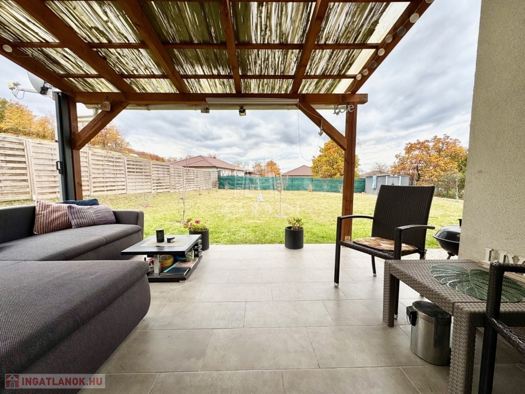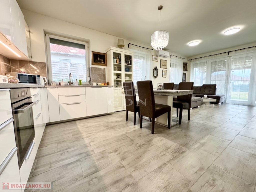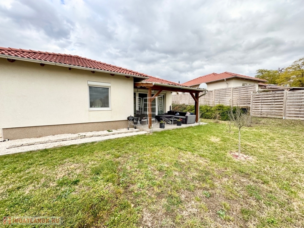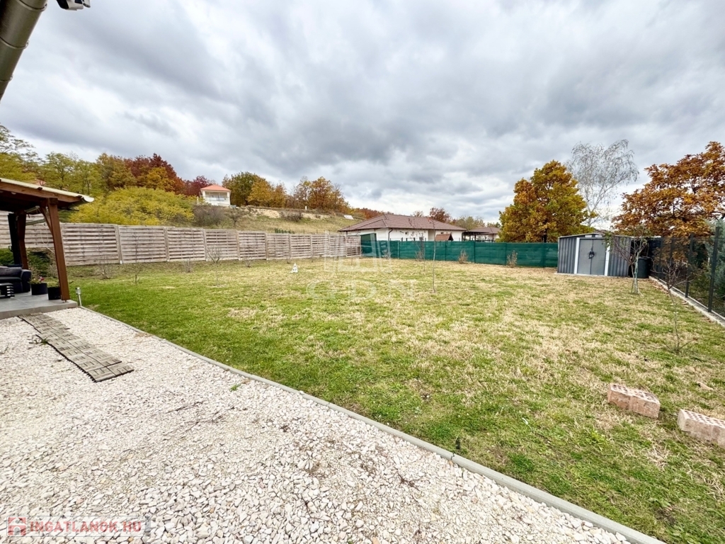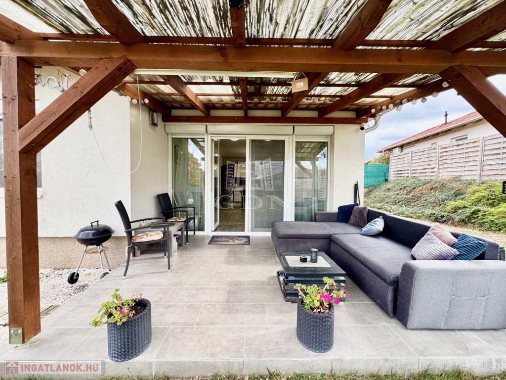Budapest és Esztergom között a pilisi hegyek ölelésében található hangulatos településen, Pilisjászfalun, Somlyó völgyi lakópark LEGJOBB RÉSZÉN, csendes jelenleg még murvával borított, de hamarosan aszfaltozásra kerülő összközműves utcájában, 800 nm-es saját kerttel rendelkező, 2020-ban épült, szigetelt, egyszintes, 71 nm-es lakóterületű, nappali + 3 háló szobás, amerikai konyhás, kamrás, közvetlen kert-teraszkapcsolatos, kiváló elosztású, külön nyíló szobás, napos-világos D-NY-i fekvésű, alacsony fenntartású, modern, kondenzációs gázkazán fűtésű, újszerű állapotú, klimatizált, riasztórendszerrel felszerelt ikerház fél, beépített, gépesített konyhával, 2 gépkocsi számára alkalmas felszíni gépkocsi beállóval, 8 nm-es kerti tárolóval, gondozott kerttel, eladó.