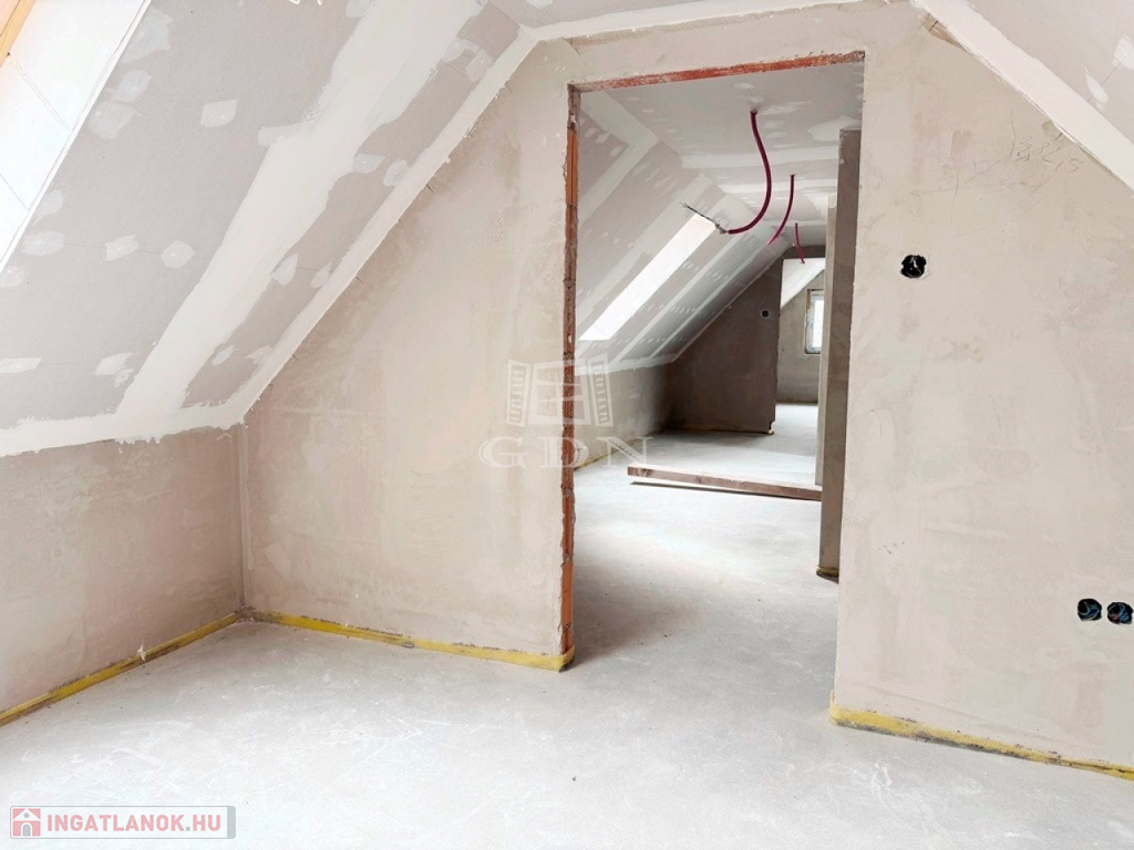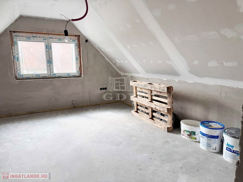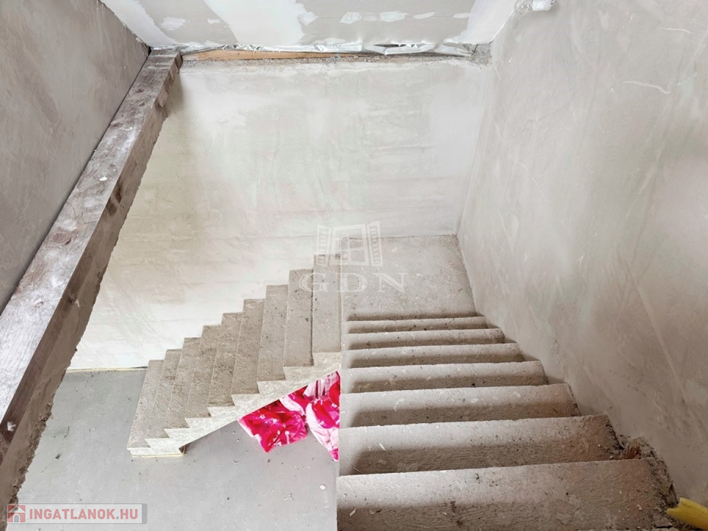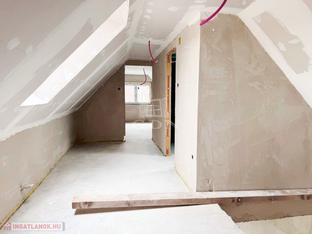 A lakás 90% készültségi állapotban van. 102 nm nettó alapterületű 2 szintes, +19 nm fűtött garázzsal. Összesen 121m2. 3 szoba amerikai konyha, nappali, fedett terasz, dupla komfort, gardrób. 33% helyben előállított villamosenergia, amiről napelemek gondoskodnak. A locsoláshoz fúrt kút biztosítja a vizet. Klíma kiállások előkészítve. Riasztórendszer kiépítve. Az konyhabútor elkészítéséhez szakembert tudunk biztosítani!