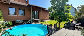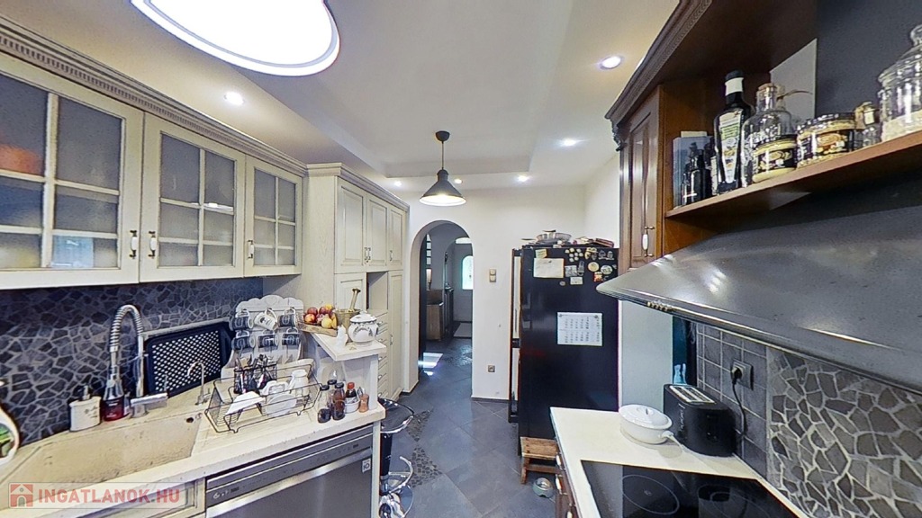 A Duna kézzelfogható közelsége, és a csendes mellékutca garantálja ennek az otthonnak a nyugodt, családias hangulatát. Emellett a nagy, világos terek, a csodálatosan karbantartott, különleges növényekkel teli kert, a két nagy - akár télen is használható - terasz és az áramoltatóval rendelkező medence szolgálja a tulajdonosok mindenkori kényelmét.