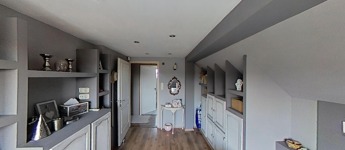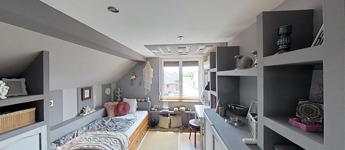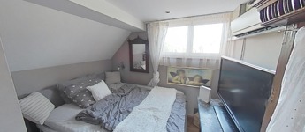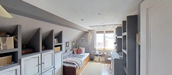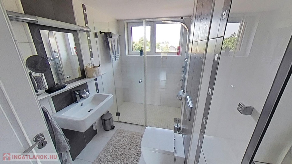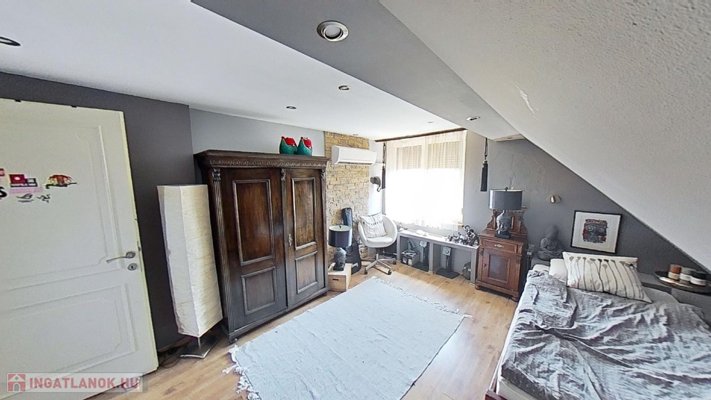 Az emeleten további 2 teljes értékű és egy fél hálószoba, fürdőszoba/wc, valamint egy gardrób szoba került kialakításra, picit több, mint 40 hasznos négyzetméteren.