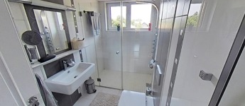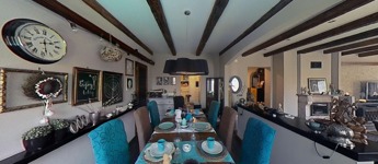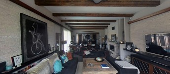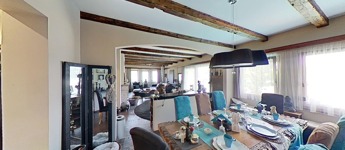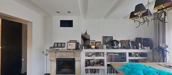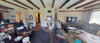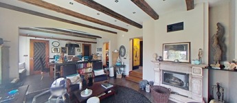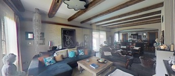 A ház főbejárata egy nagy 30 nm-es teraszról nyílik, melyen akár rossz időben is használható. A medence mellett még egy nagy, 30 nm-es terasz van, melyben egy működő kandalló is helyet kapott. A medencéhez sportoláshoz alkalmas áramoltató is jár.