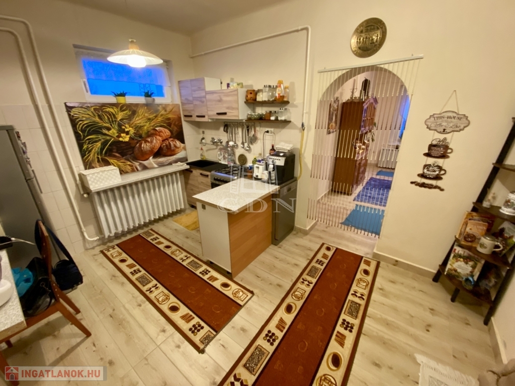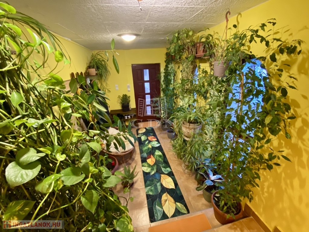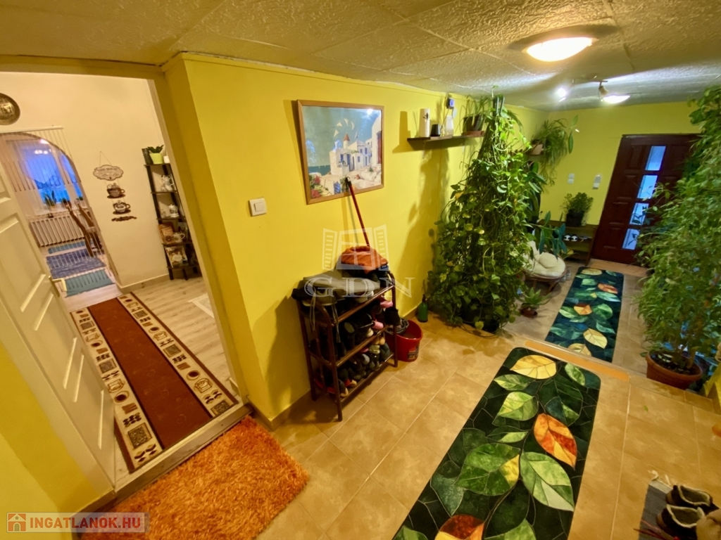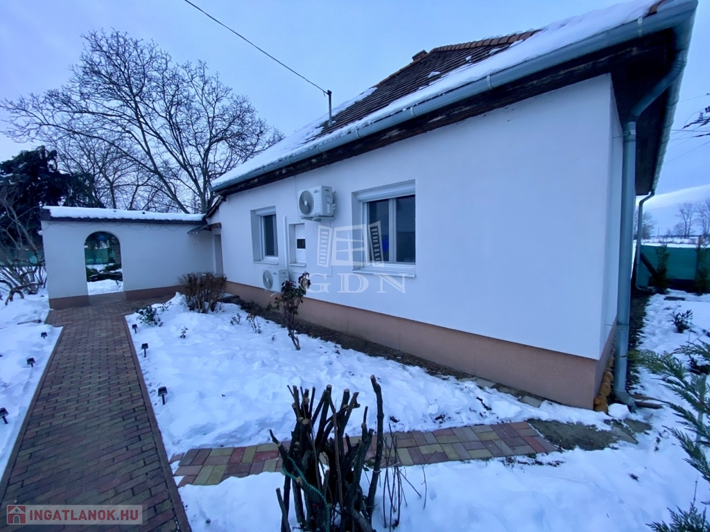 A lakótérbe belépve egy előszoba fogad, ahonnan közvetlenül elérhető a mosdó és egy gardróbszoba. Az előszobából nyílik a konyha, amely kapcsolatban áll az egyik hálószobával és az étkezővel. Az étkezőből továbbhaladva érhető el a másik hálószoba, a fürdőszoba, valamint a kamra. A ház két klímával rendelkezik, az új, redőnnyel szerelt nyílászárók pedig jelentősen növelik az ingatlan kényelmét és energiahatékonyságát.
