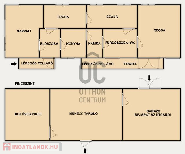 A lakóterület 106 nm amely teljesen alápincézett (106 nm). A pincében boltíves borospince, táróló és garázsok kaptak helyet. Felhívnám a figyelmet, hogy további parkolóhely kialakítására van lehetőség akár a pincében akár a kert területén is.