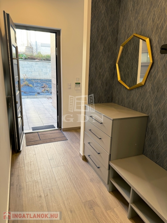 Az épület egy 736 m²-es gondozott, örökpanorámás telken helyezkedik el. A kert igényesen kialakított gyepszőnyeggel és örökzöld növényekkel rendelkezik, az öntözésről automata rendszer gondoskodik, így a zöldfelület egész évben rendezett marad. A 25 négyzetméteres teraszon kényelmesen tarthatók családi és baráti összejövetelek. A telken helyet kapott egy 14 m²-es kerti tároló is, amely tökéletesen alkalmas kerti eszközök vagy egyéb holmik elhelyezésére.