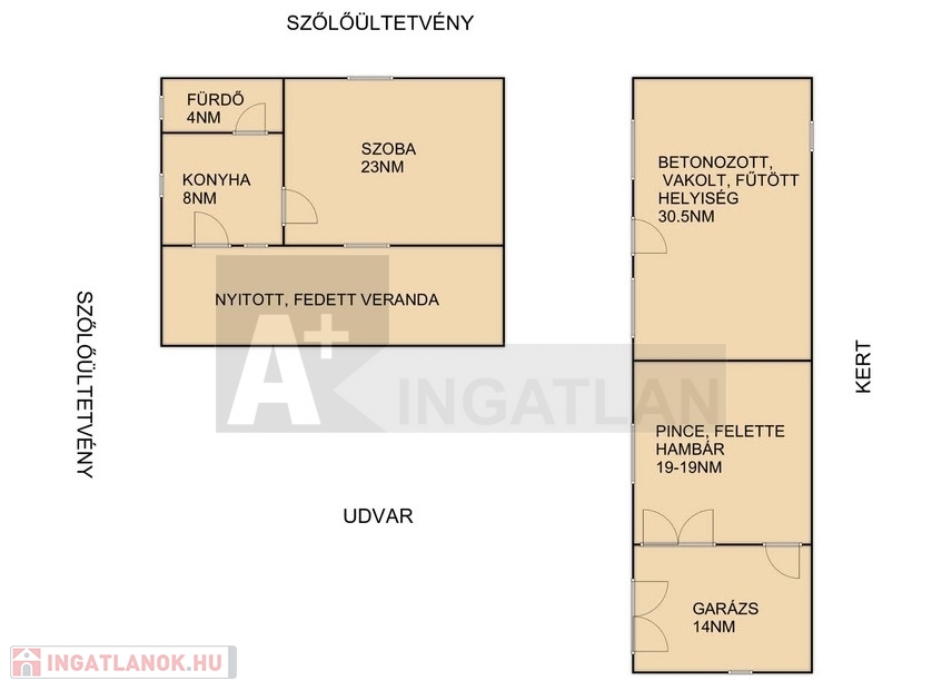 Melléképület: 65 m²-es, melyben egy nagy garázs, pince, hambár, egy 30nm-es fűthető helyiség és egy nyitott fatároló kapott helyet. AKÁR KÜLÖN LAKRÉSZ KIALAKÍTÁSA IS LEHETSÉGES!