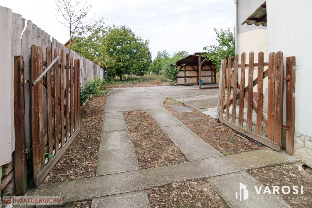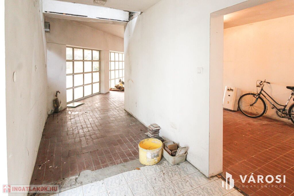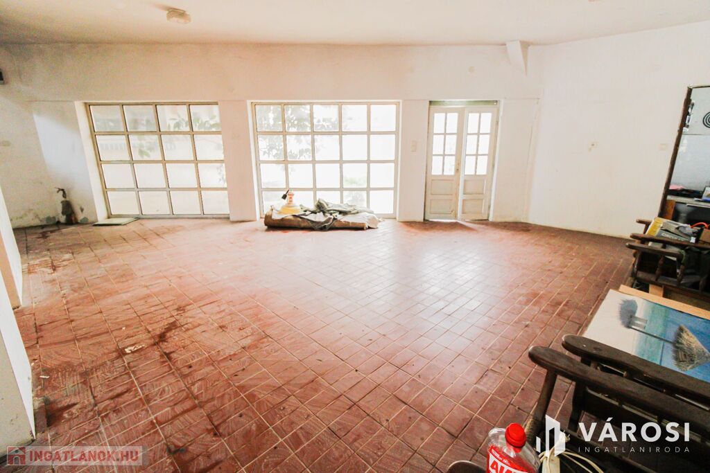 Eladó egy 1360 m2 telken elhelyezkedő 134 m2 hasznos alapterületű tégla építésű családi ház, amelyhez egy 120 m2 üzlethelyiség csatlakozik. Alkalmas üzletnek, raktárnak, kisebb üzemnek, egyéb vállalkozásra.
