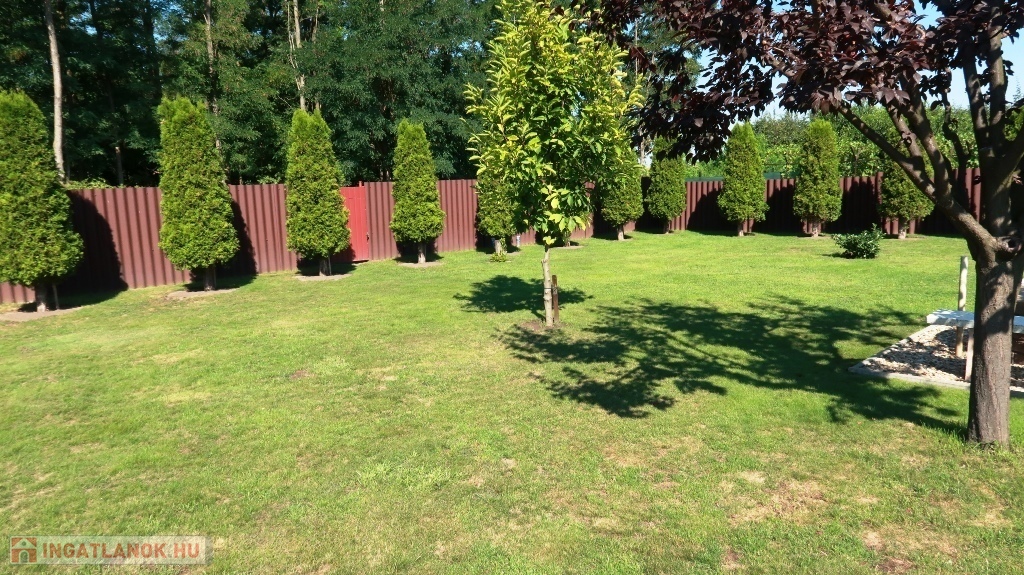 Sényőn 170 nm-es 3 szoba nappalis, járólap, laminált parketta burkolattal, műanyag nyílászárókkal, riasztóval, egyedi gáz és vegyes tüzelésű kazánnal ellátott, külsőleg szigetelt szintes téglaépítésű családi ház, új cserép tetővel, térkövezett udvarral, parkosított telekkel, fúrt kúttal,saválló csővel bélelt kéménnyel, 2db konyhabútorral, dupla garázzsal, melléképülettel eladó. Az ingatlan alsó szintjén található: 1 szoba, nappali, konyha, étkező, füdőszoba, wc.