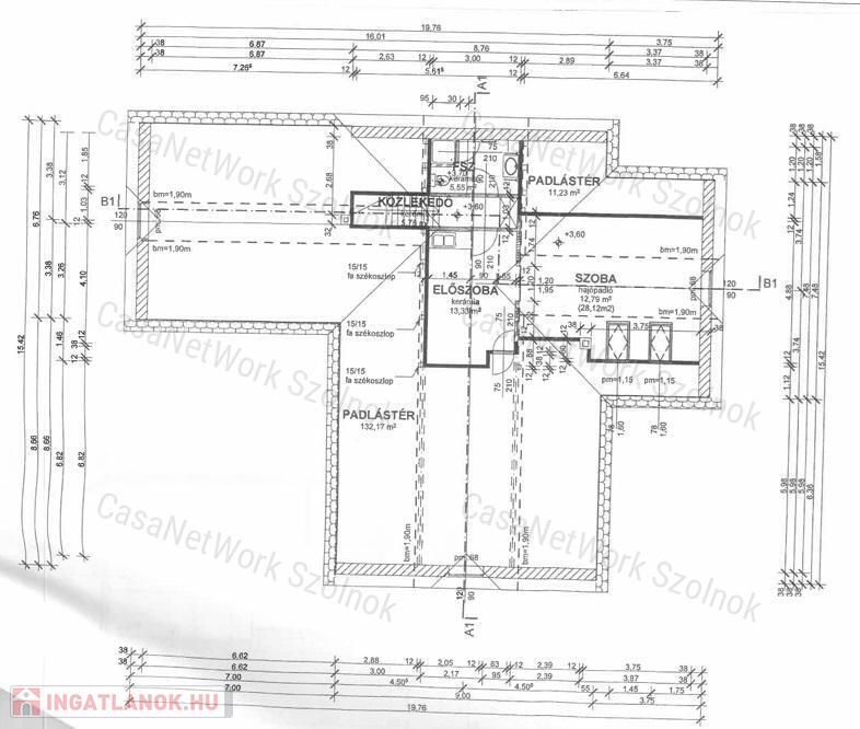 alapterület: 175 m² (földszint 137 m² + tetőtér 38 m²)