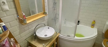 Kádas fürdőszoba wc-vel, nagy kamra, tároló és előszoba helyiségek találhatók.
