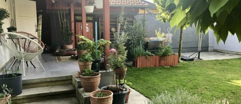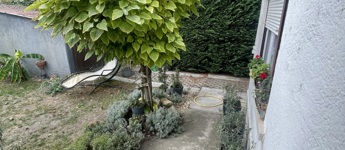 Rendezett, kényelmes méretű kert, amely könnyen karbantartható, de valódi zöld környezetet biztosít – konyhakert számára is ideális.