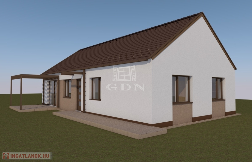 A ház tágas, világos, minőségi anyagokból készült. A ház szerkezete Porotherm tégla kívülről 20 cm szigeteléssel nemesvakolattal. A födém külső borítás cseréppel (BRAMAC) készül alatta a megfelelő vastagságú fóliázattal.
