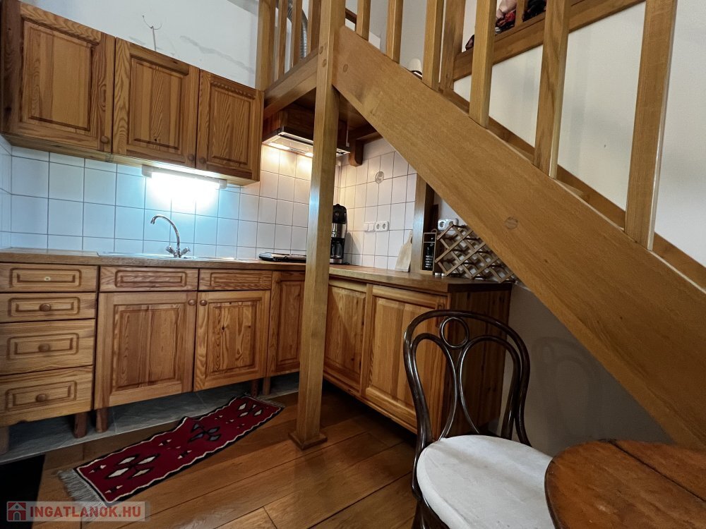 Integrált boltíves pincével, konyha-étkező/társalgóval, hálószobával, fürdővel.