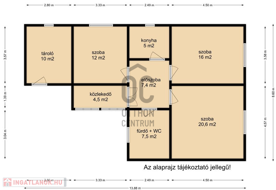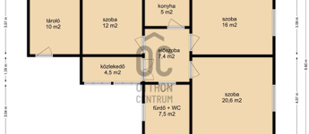 - Helyiségek: 3 hálószoba, konyha-étkező, fürdő-WC, közlekedő, kamra, veranda