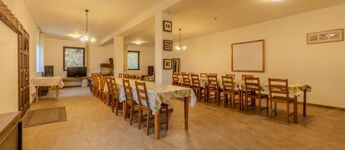 Az épületben 8 szoba, 5 fürdőszoba, egy tágas konyha és étkező/oktatóterem található, amely kisebb rendezvények, tréningek vagy csapatépítők lebonyolítására is tökéletes.