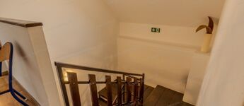 A kőfalak, az eredeti tölgygerendák és a gondosan restaurált díszítőelemek autentikus hangulatot teremtenek, miközben a ház minden részletében a gondos megőrzés és minőség érződik.
