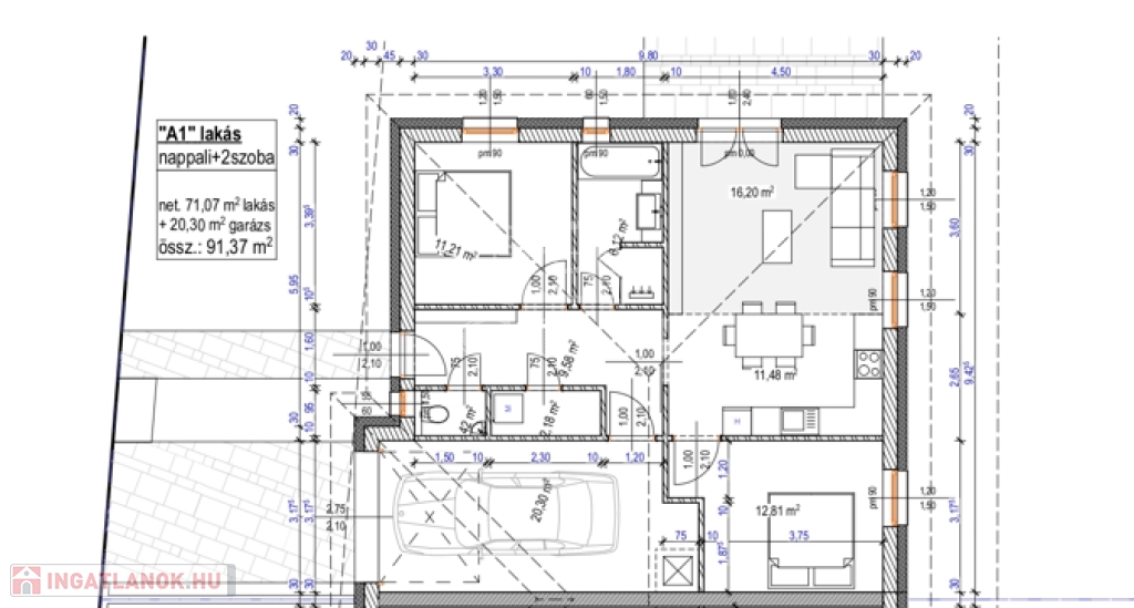 10 cm-es kerámia válaszfalat, a szerelvény a 7,5 cm-es szerkezetben kerül kialakításra. A födémet a tetőszerkezet elemei adják, amihez gipszkarton álmennyezet kerül rögzítésre, kialakítva egy 20 m2-es pakolásra alkalmas területet, amit padlásfeljáró segítségével lehet elérni. A teherhordó falak és a hanggátló fal is gipszkartonlap borítást kap, így az egész belső tér egy homogén, rendkívül pontos felületet fog alkotni.