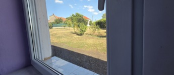 A fehér színű, hőszigetelt műanyag ablakok szúnyoghálóval felszereltek, így a nyári szellőztetés zavartalanul megoldható.